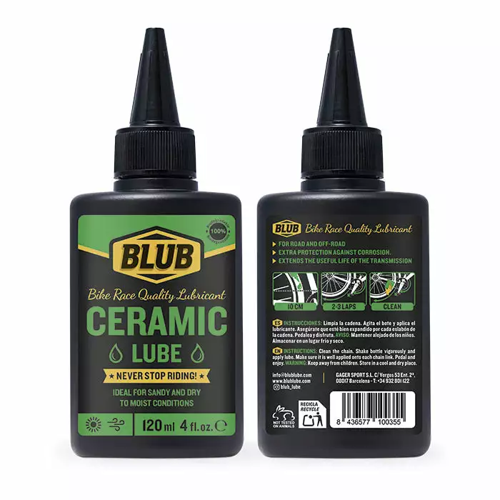 This Ceramic Chain Lube is the premium offering from Blub and provides advanced chain lubrication in all kinds of conditions. Ceramic particles are suspended in a wax-based solution that dries in a few minutes leaving a lubricating film that won’t attract dirt and abrasive elements.