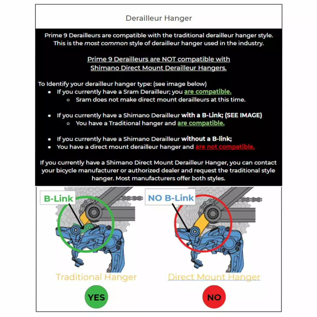 Compatible with standard derailleur hangers only (not compatible with Direct-Mount hangers)
