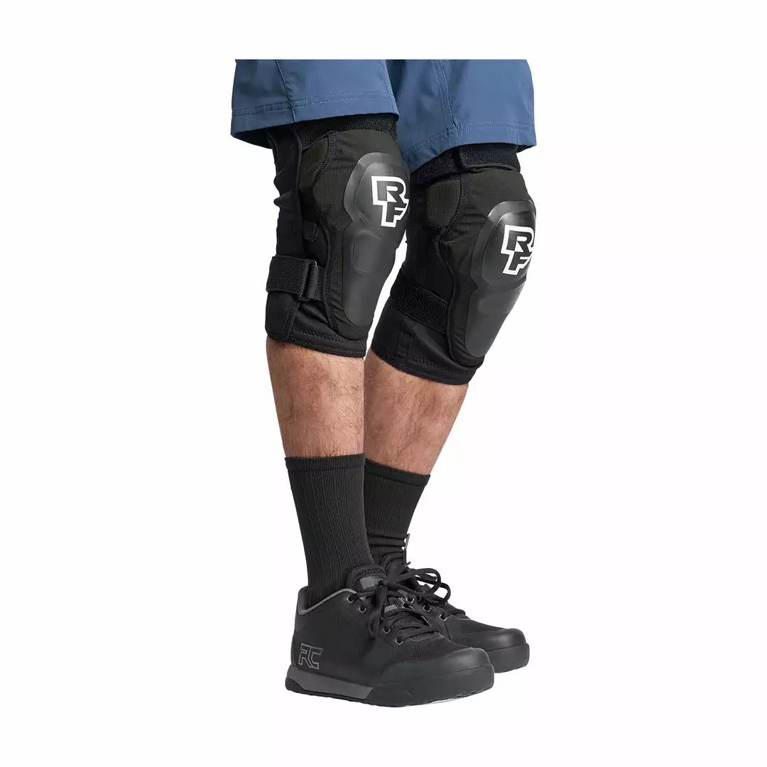 The Flank Leg Guards are part of the RaceFace Enduro protection range and they are designed with big days in the saddle and high-consequence riding in mind. They feature a durable TPU skid plate for sliding during crashes, as well as a ripstop knee cover for extra abrasion resistance and durability. The D30 protective insert has a Krydex pierce-proof layer, and extra foam padding on the sides will stop you from banging your knees on your frame.Â