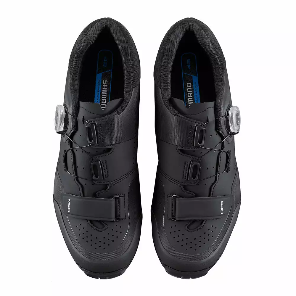 The Shimano SH-ME502 SPD Shoes are a performance trail shoe with excellent pedalling efficiency as well as great traction off the bike. The shoe is secured with a BOA L6 dial to provide quick entry/exit and micro-adjustment for the optimal fit. Reinforced armour protects your toes and enhances durability, and the grippy rubber outsole compound offers great traction in all conditions.