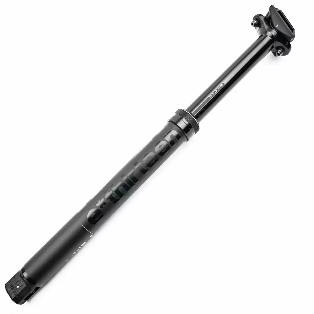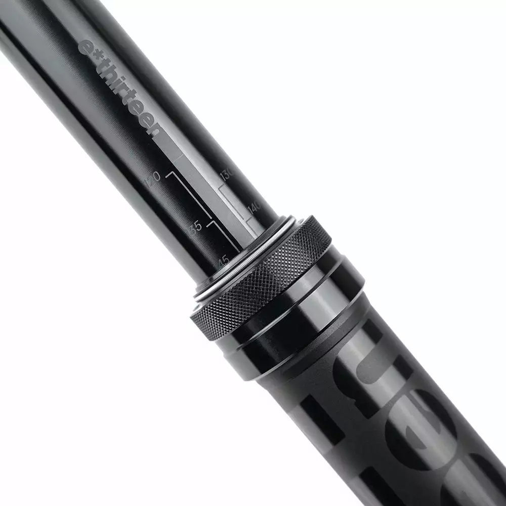 The E-Thirteen Vario is an infinitely adjustable gas-charged dropper post with a quick-adjustment feature that allows the overall travel of the post to be reduced in 5mm increments, up to a maximum of 30mm. This allows riders to