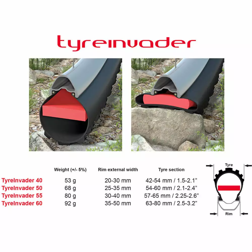 If you like bombing down rocky trails but cringe at the sound your rim makes every time you catch a rock, then you should probably invest in some tyre inserts! Designed to be light weight and simple to install, the Tyreinvader helps save your tyres and rims from hard impacts without interfering with how your wheels behave.Â