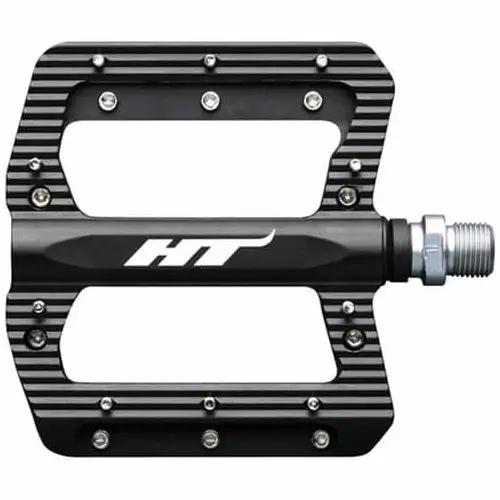 Great for trail and DH use! Â HTÂ ANS01 Flat Pedals are a low profile, medium-sized pedal that offers fantastic grip and reliability. Â With 10 replaceable pins per side, you will have awesome grip in the roughest terrain. Â With long lasting bearings and an extruded magnesium body, the ANS01 will last be dependable for seasons of use! Â