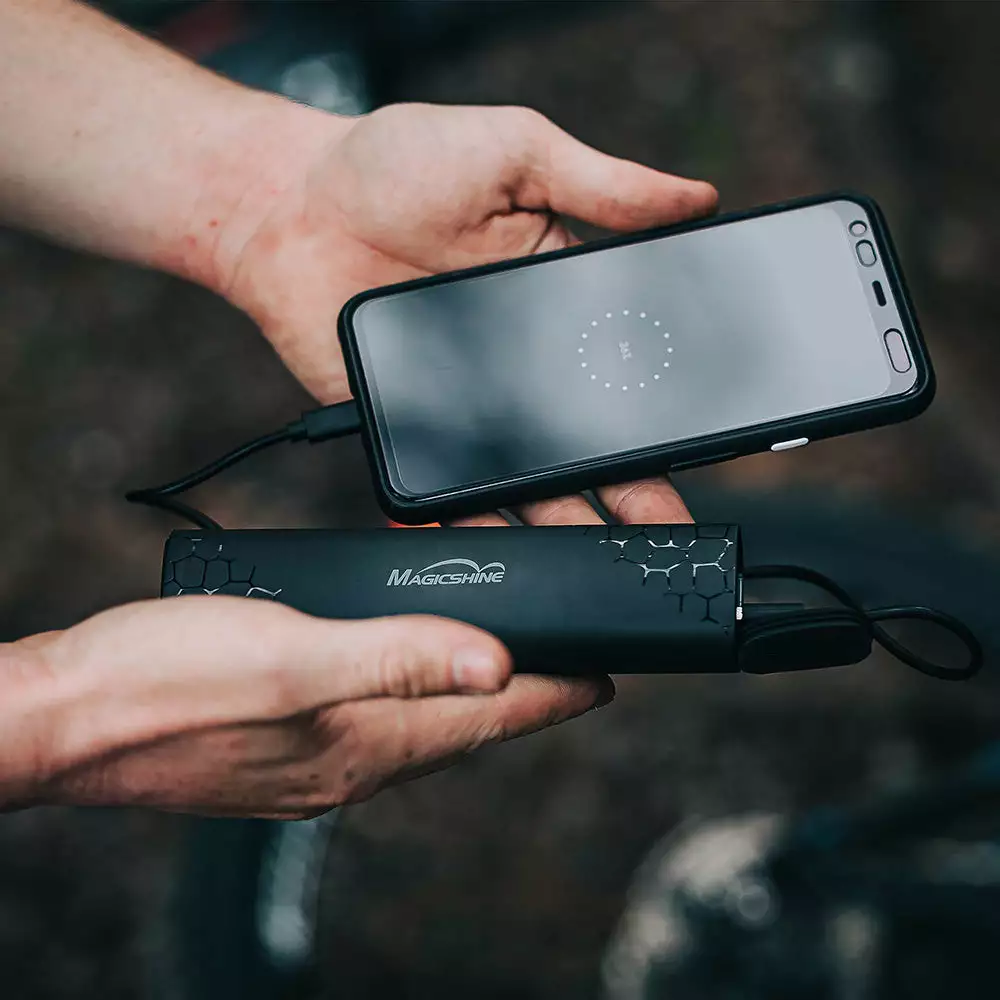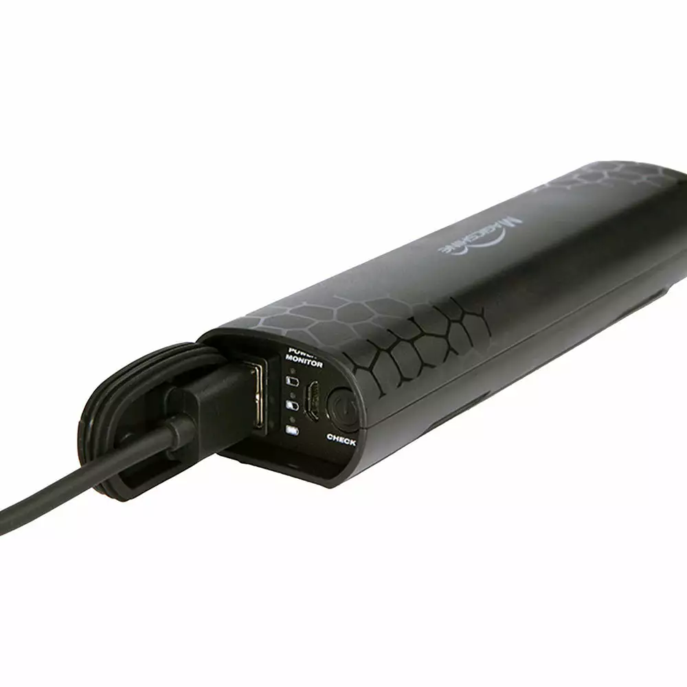 Magicshine’s MJ-6116 battery pack is a 5200mAh 7.2V replacement rechargeable battery pack for your MagicshineMJ-900 series, MJ-902 series and MJ-906 series bike lights as well as the Monteer 3500S. The clever thing is, that it’s also a portable power source that provides you with a USB outlet for recharging your phone or GPS device while out on the trail.