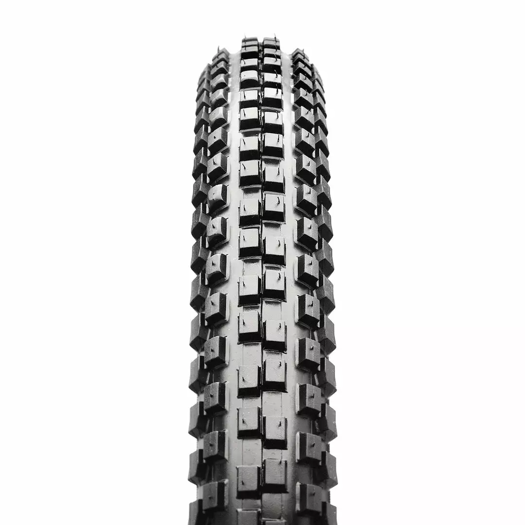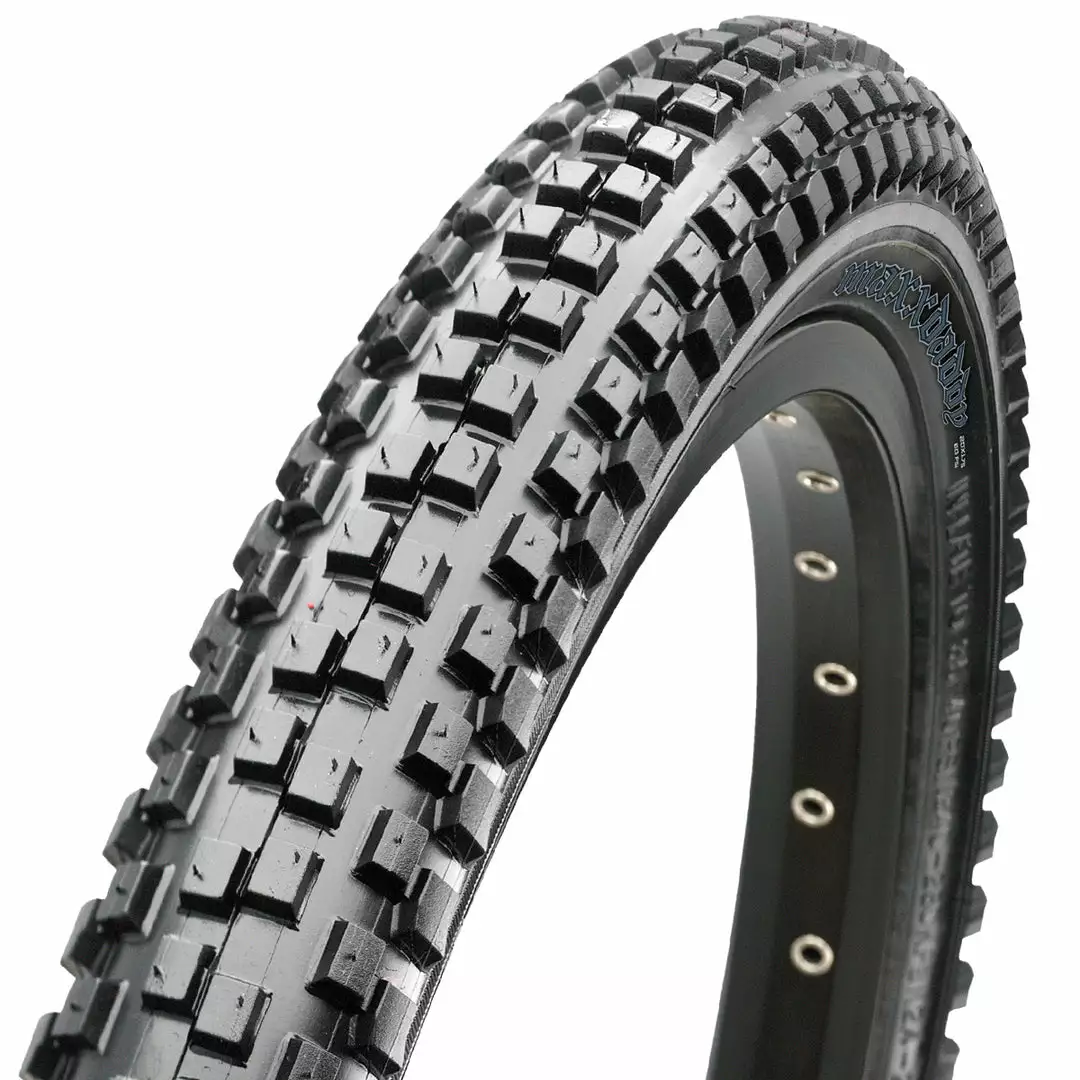 Staggered, tightly spaced center lugs provide controllable speeds. The knob spacing increases near the shoulder lugs to produce two channels that hook up on hardpack berms to loose dirt on the trails.Â