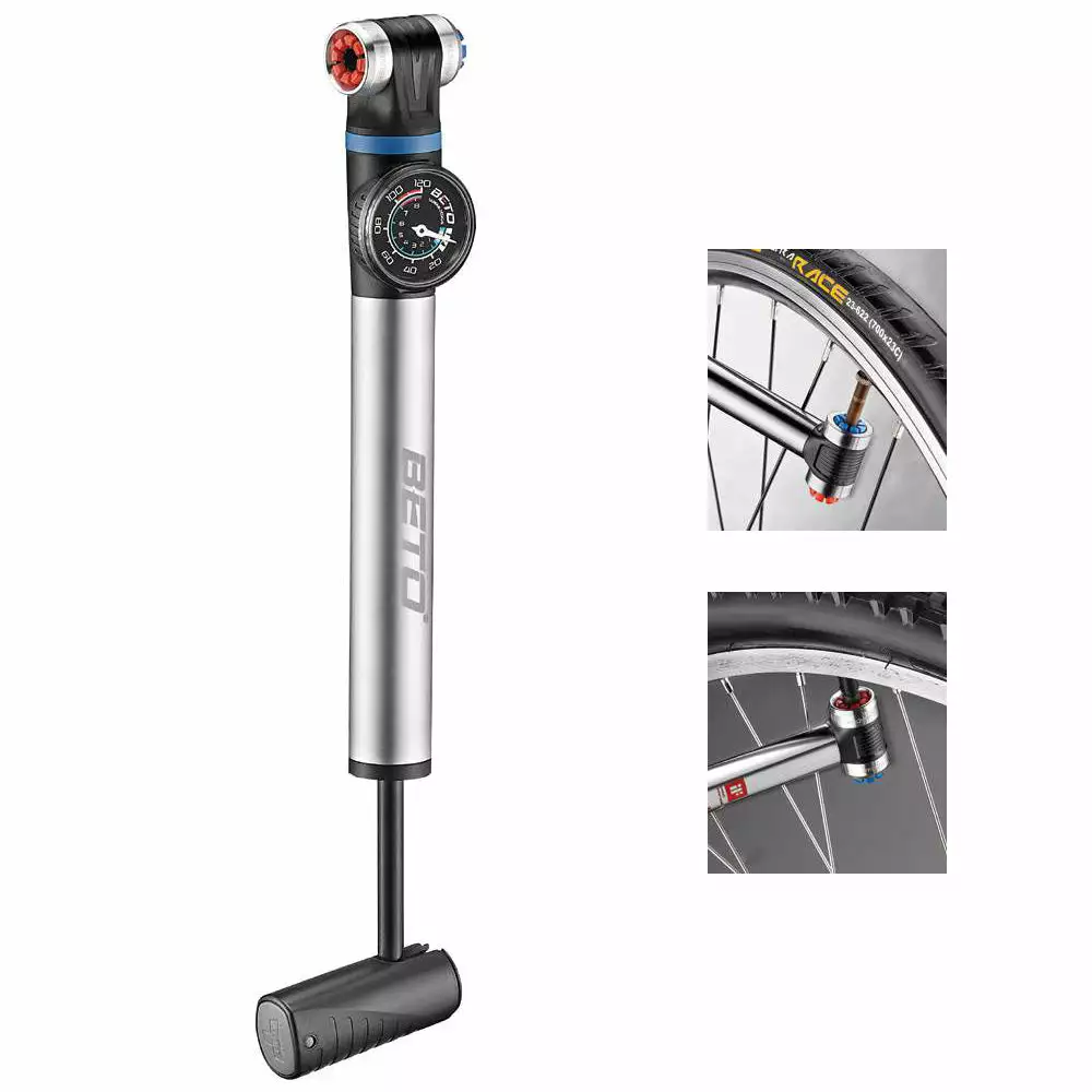 Pump head type: Beto’s patented EZ Head dual Schrader / Presta push-on, pull-off head. No lever and no second hand required.