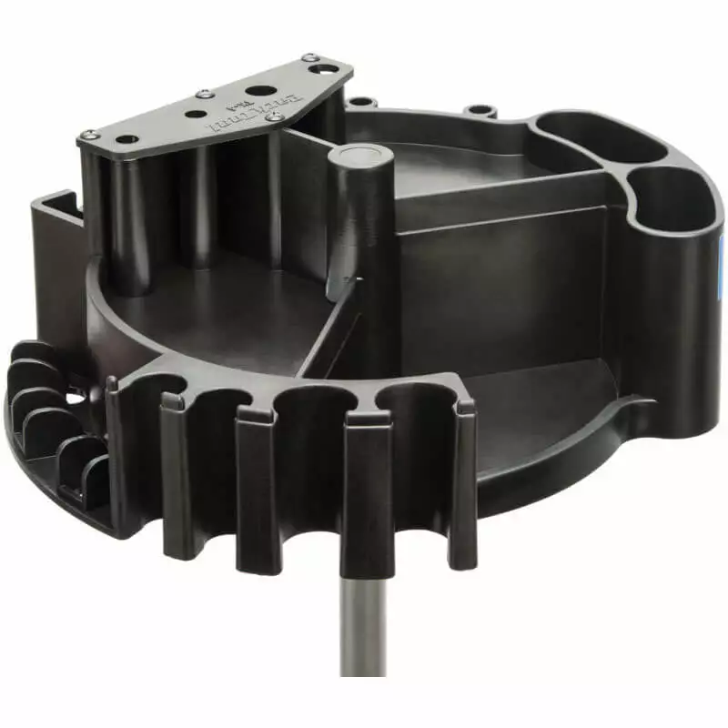 Keep your most commonly used tools close at hand with this clever, multi-function tool holder. The TK-4T was painstakingly designed with pockets and holders for specific tool shapes and sizes as well as some generic storage areas. Available in two versions, the Tool Kaddie rotates for easy access and is molded from a durable composite material.