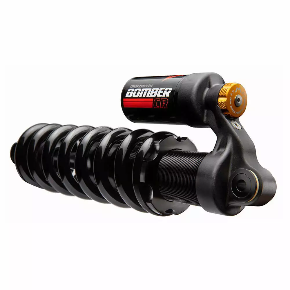Keeping in step with Marzocchi’s founding philosophies, Bomber CR Coil Shock prioritises suspension performance, ride quality and durability and pairs that up with the engineering quality and reliability of Fox (Marzocchi’s parent company). The Bomber CR is essentially a new and updated version of Fox’s classic Vanilla Coil shock, providing high levels of performance and the amazing feel of a coil, but keeping things simple by limiting the available adjustments to low-speed compression and rebound.Â