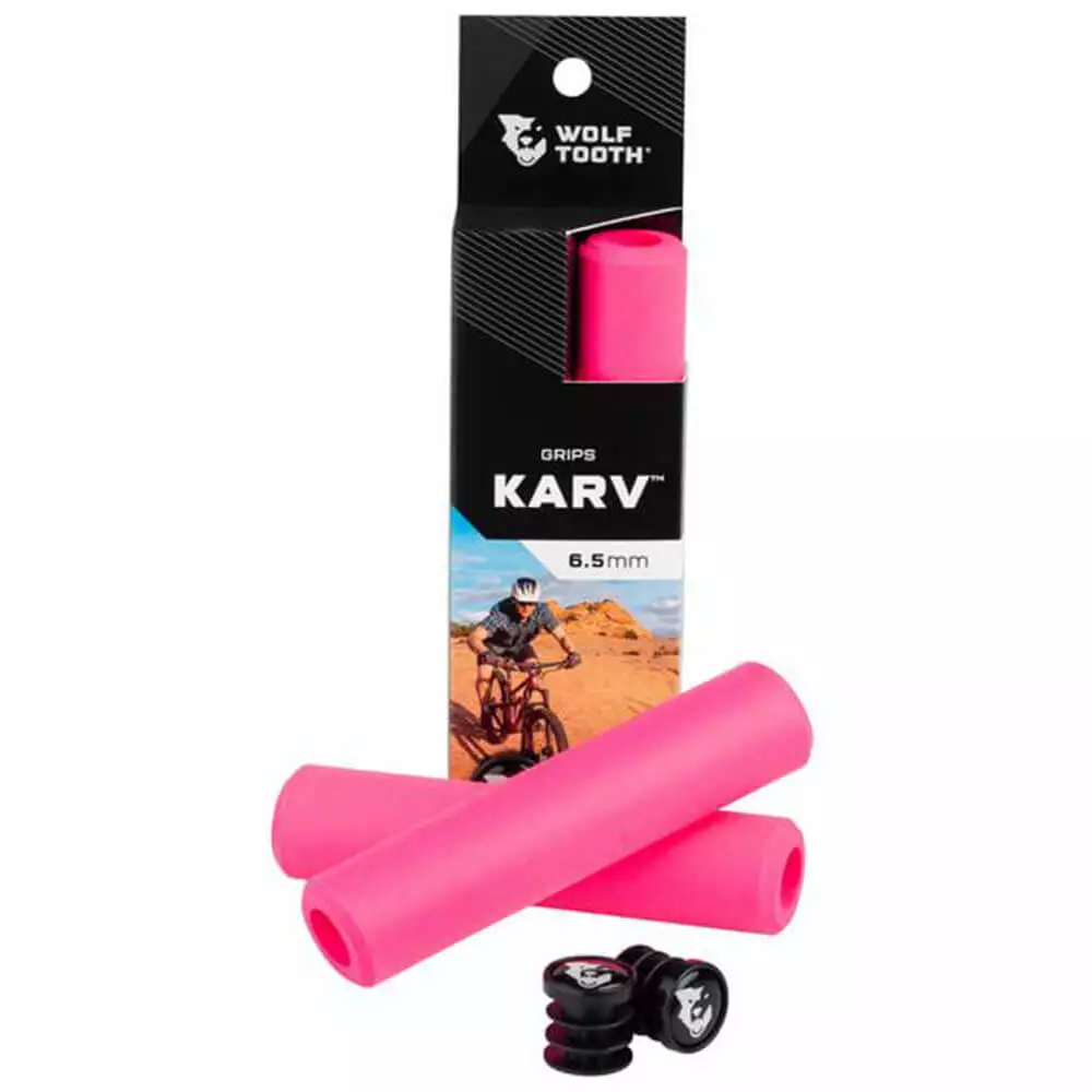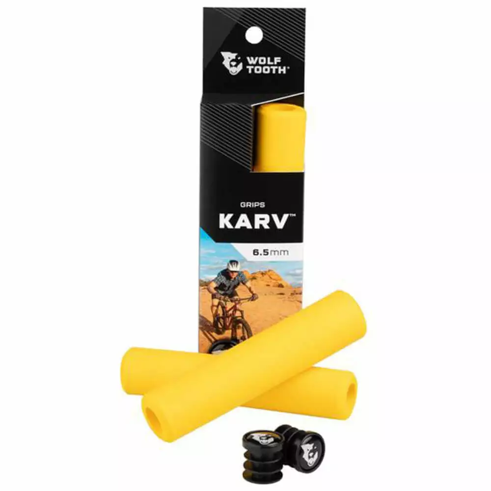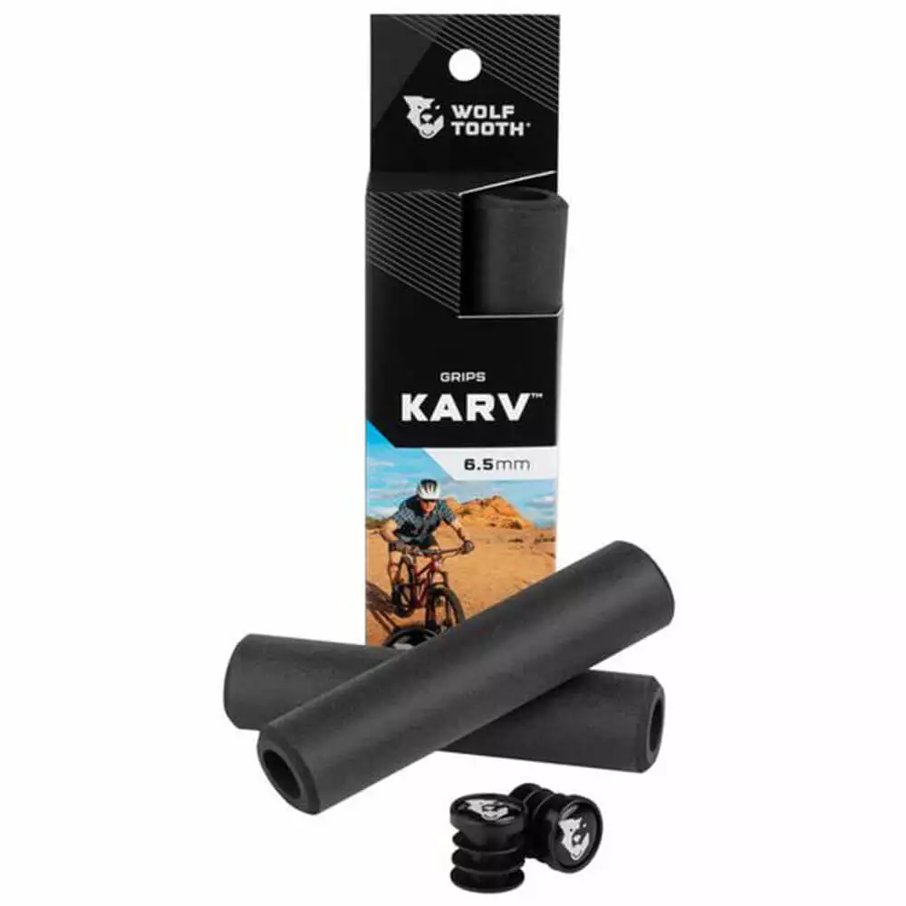 If you like the idea of running Wolf Tooth’s grips, but thought the Fat Paw would be too large for your hands, then the Wolf Tooth Karv are the grips for you. Thicker than the Razer, but thinner than the Fat Paw, the Karv features a 32mm diameter, perfect for most riders. Made with a silicone compound, they offer excellent vibration dampening for reduced hand fatigue and finger numbness on longer rides. The tacky texture also offers excellent grip with or without gloves.