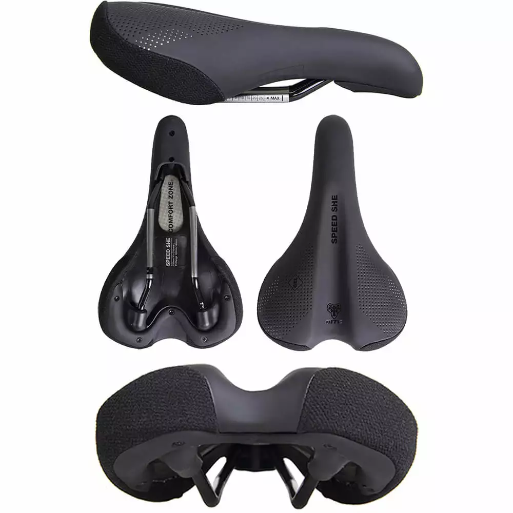 Pros: Great comfort and excellent value. The dimensions and shape of the saddle have been designed with women in mind