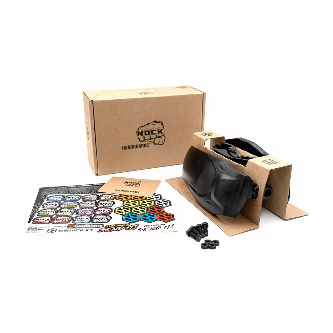 Racing on the Enduro scene means even the gnarliest tracks are on the cards. With speed comes wringing out every inch of track, sometimes that means smashing your hands through sharp bushes or clipping trees. Even riding on home trails there are often pointy things lurking trailside waiting to stab your knuckles or grab your brake levers. Luckily the team at SendHit have got us covered with their new Nock Handguards.