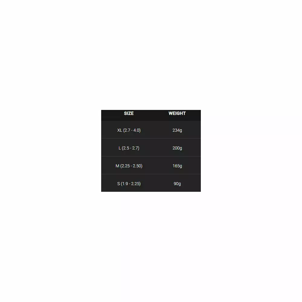 Available in four sizes:Â Small 1.9-2.25in (XC/marathon) Medium 2.25-2.5in (AM/Enduro) Large 2.5-2.7in (Enduro/Plus bikes) Extra Large 2.7-4.0in (Plus/Fat bike) tyres.